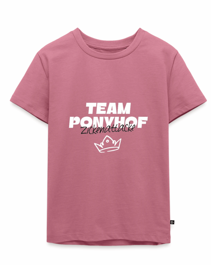 Unser „Team Ponyhof – Zickenattacke“-Shirt ist das perfekte Statement für alle selbstbewussten Pony-Lover. Weich, bequem und in hochwertiger Bio-Qualität gefertigt – ideal für Stalltage, Reitstunden, Hofabenteuer und natürlich für alle, die gerne zeigen, zu welchem Team sie gehören.