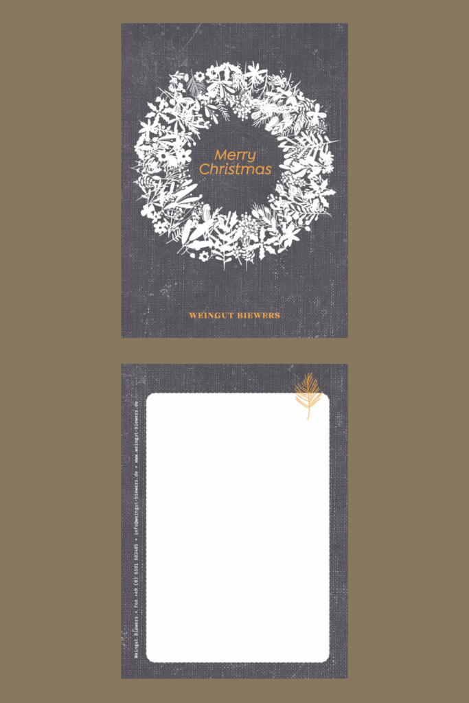 Diese edle Postkarte in Anthrazit überzeugt durch ihre minimalistische Gestaltung und wirkt besonders stilvoll zu festlichen Geschenksets und Weinpräsenten.